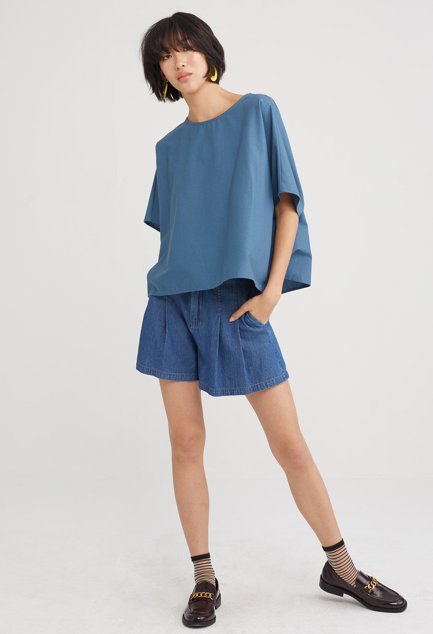 Round Neck Straight Cut Blouse