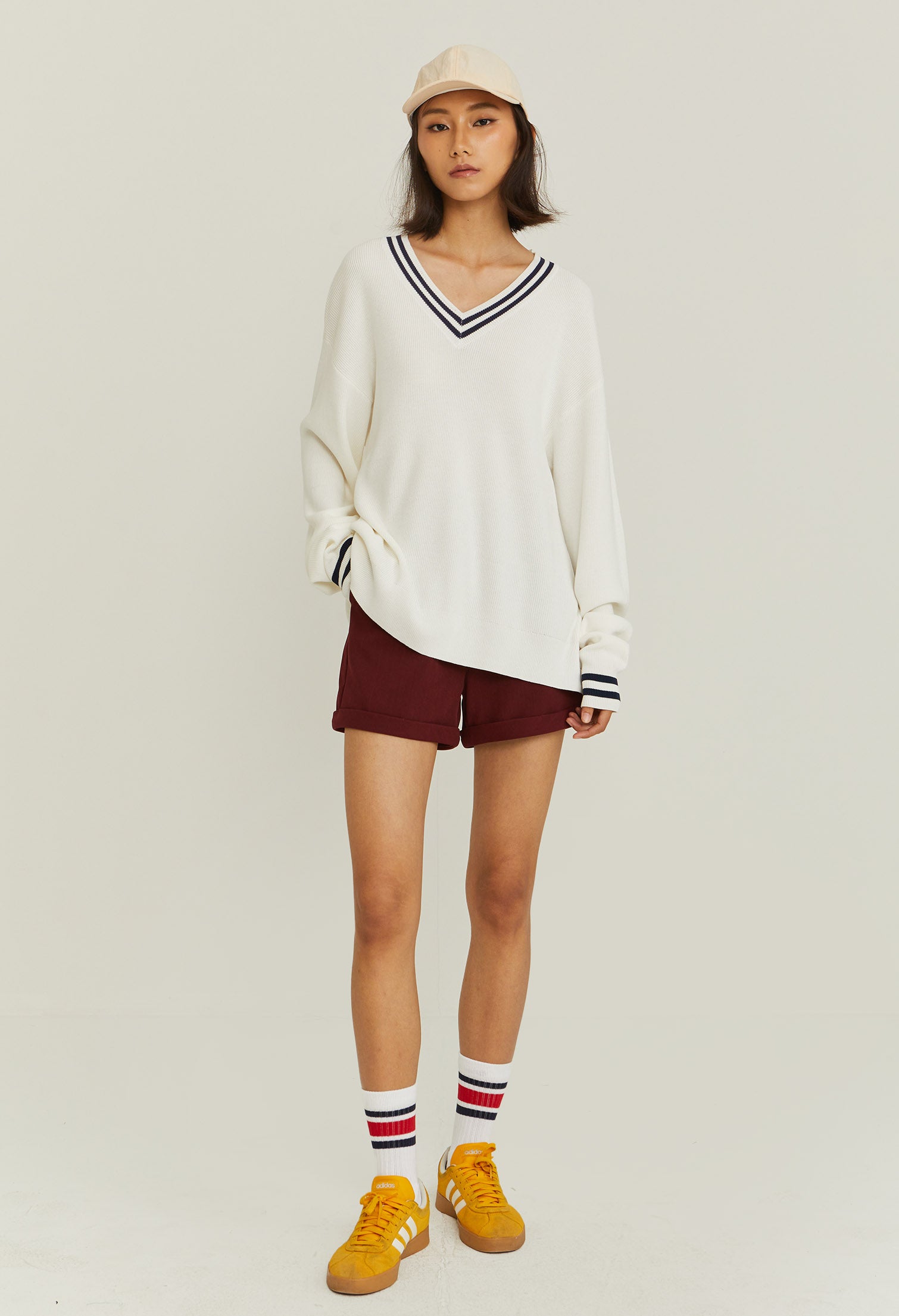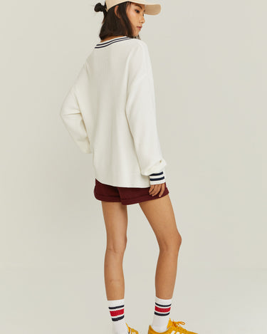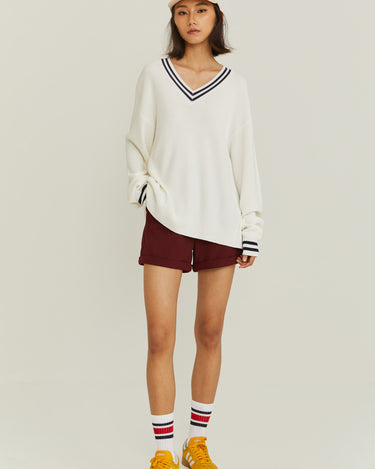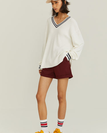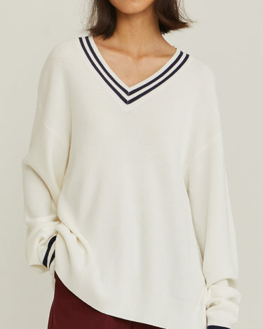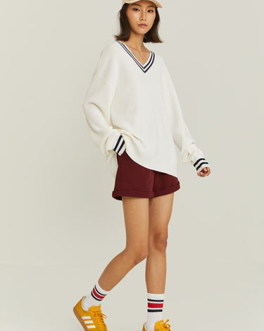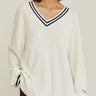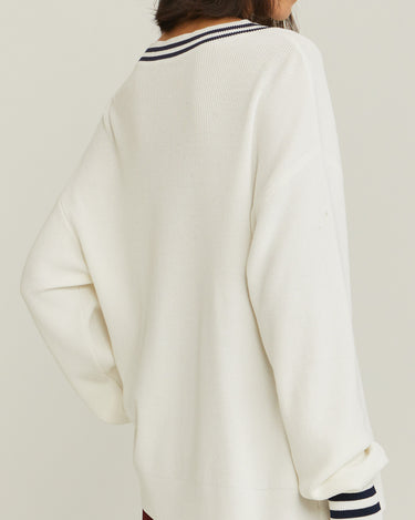 V-Neck Varsity Knitted Long-Sleeve Sweater