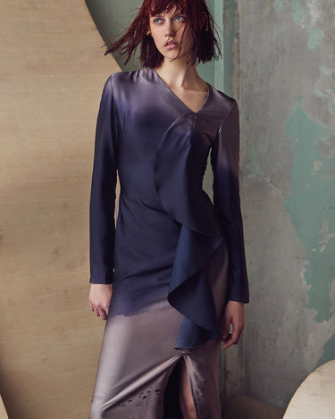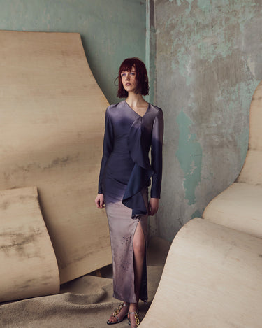 nichii X NURITA HARITH Gradient Indigo Ruffled Maxi Slit Dress