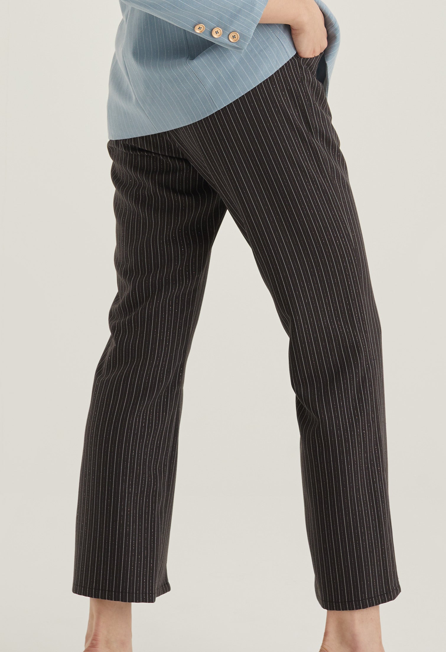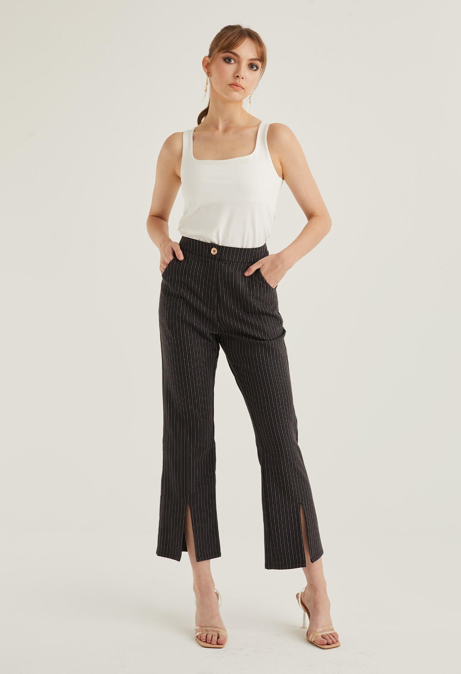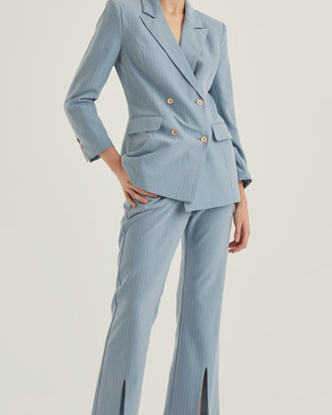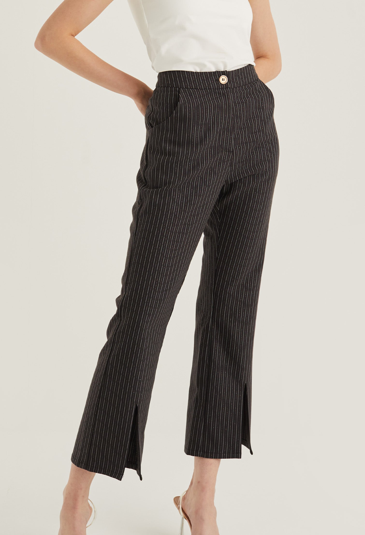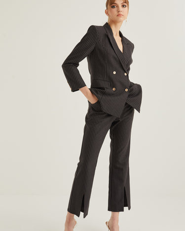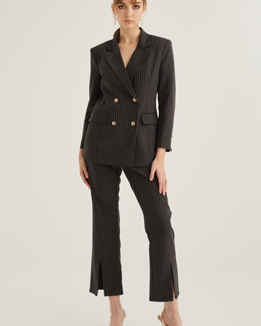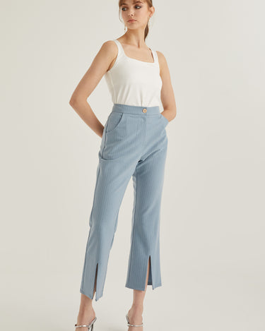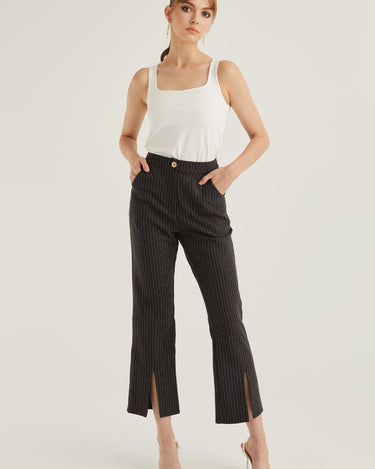 Front Slit Striped Smart Trousers