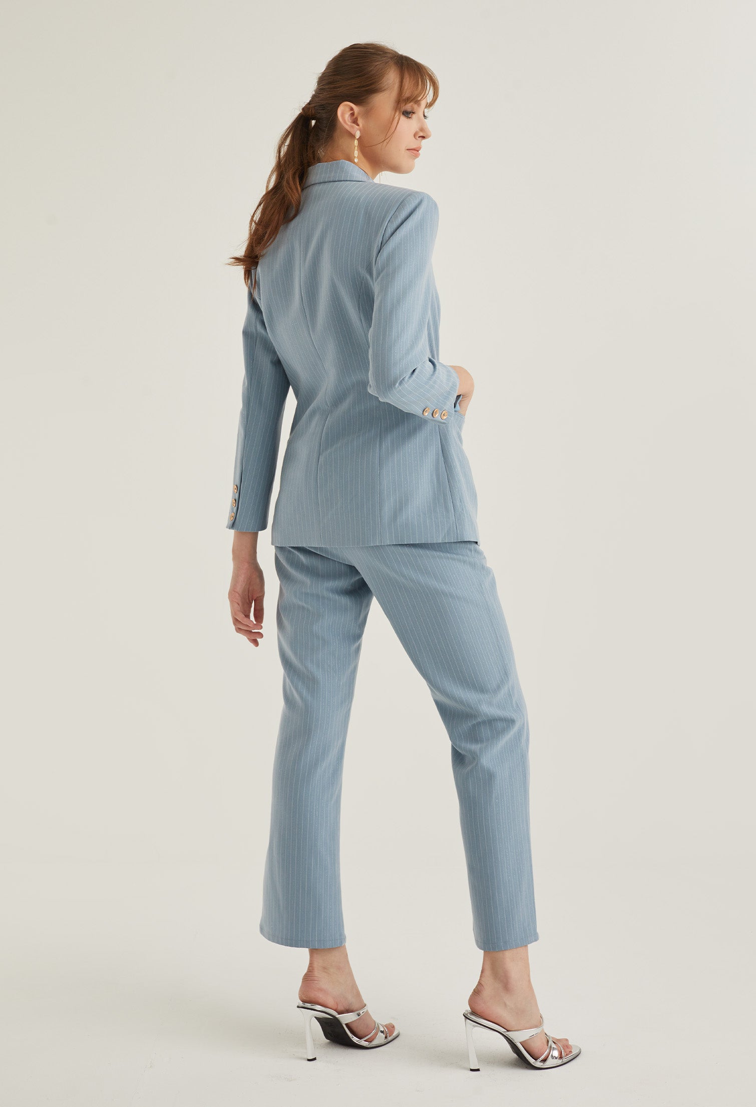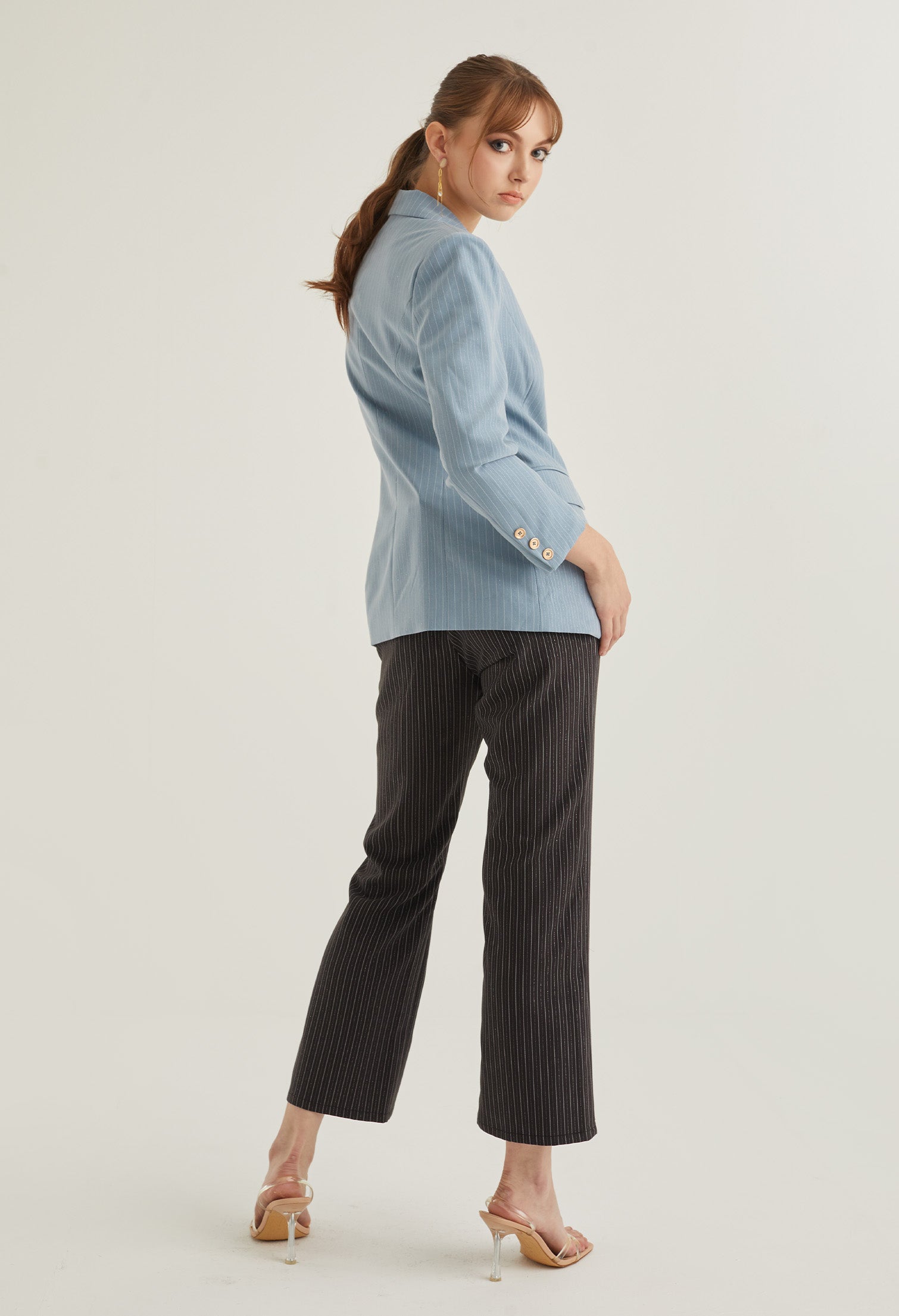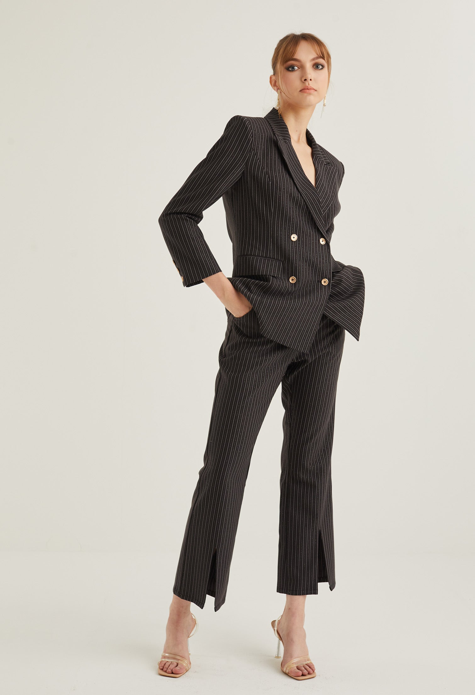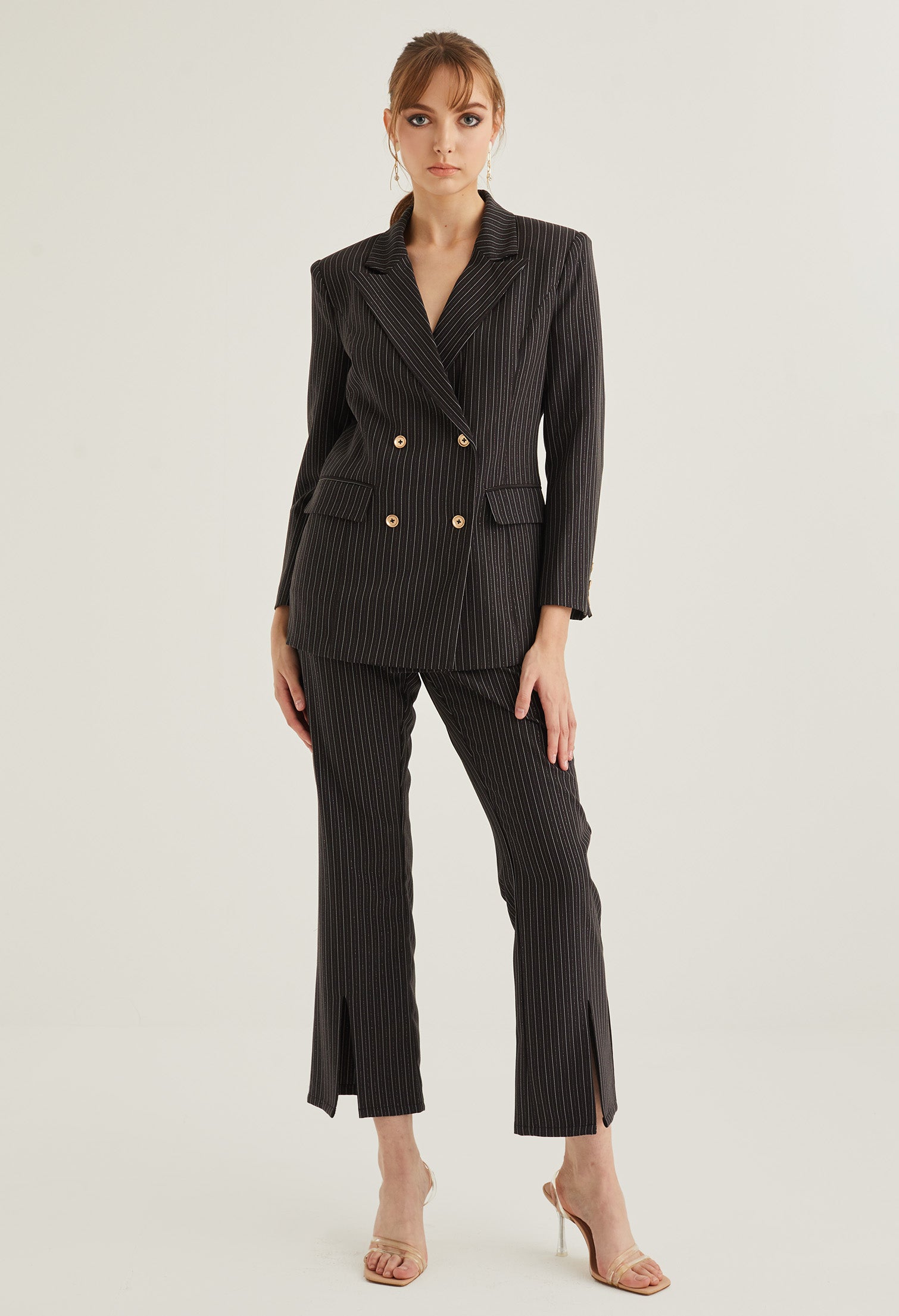 Front Slit Striped Smart Trousers